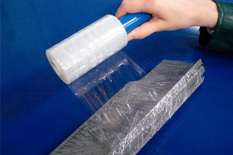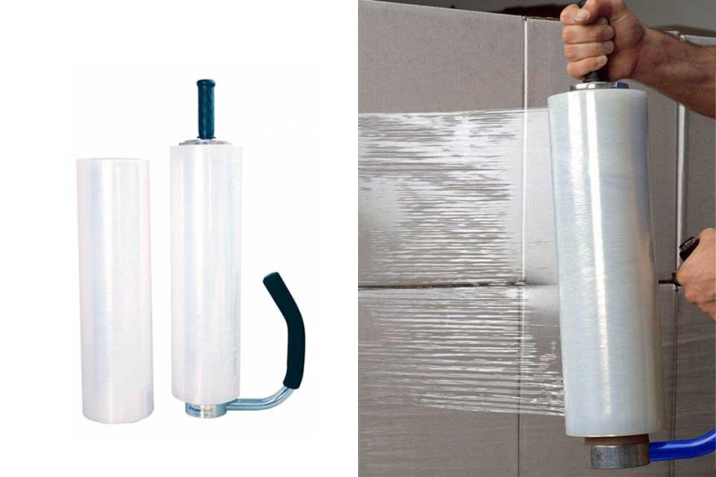 Aplicador de filme stretch é fabricado em plástico de alta resistência e utilizado para dispensar o rolo de forma esticada e firme, reduzindo a fadiga do tubete de papelão à mãos do usuário.