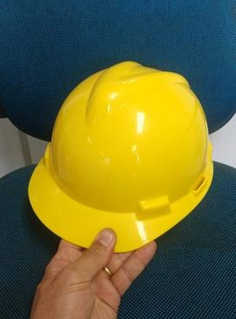 O capacete MSA é feito de plástico, uma matéria-prima forte, produzido com a finalidade de resistir e proteger os profissionais de acidentes de objetos em direção à cabeça.