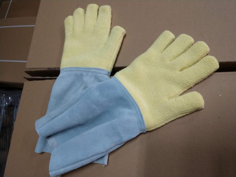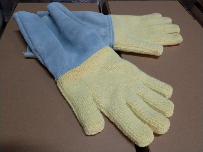 A luva de Kevlar para alta temperatura tem punho de raspa, é confeccionada em peça uniforme, possui fio aramida e protege os trabalhadores do setor da fundição no processo de têmpera de vidro, cerâmica e fornos, por exemplo.
