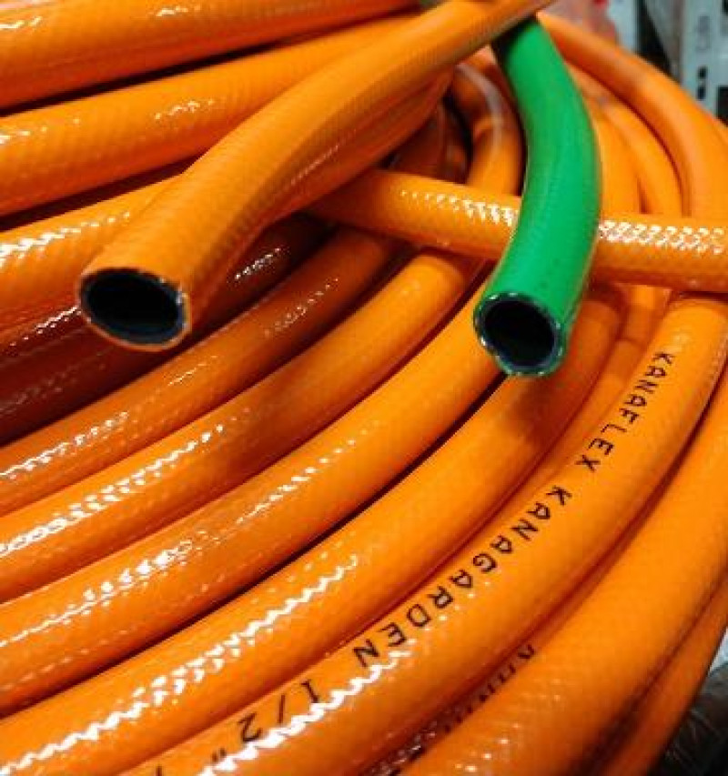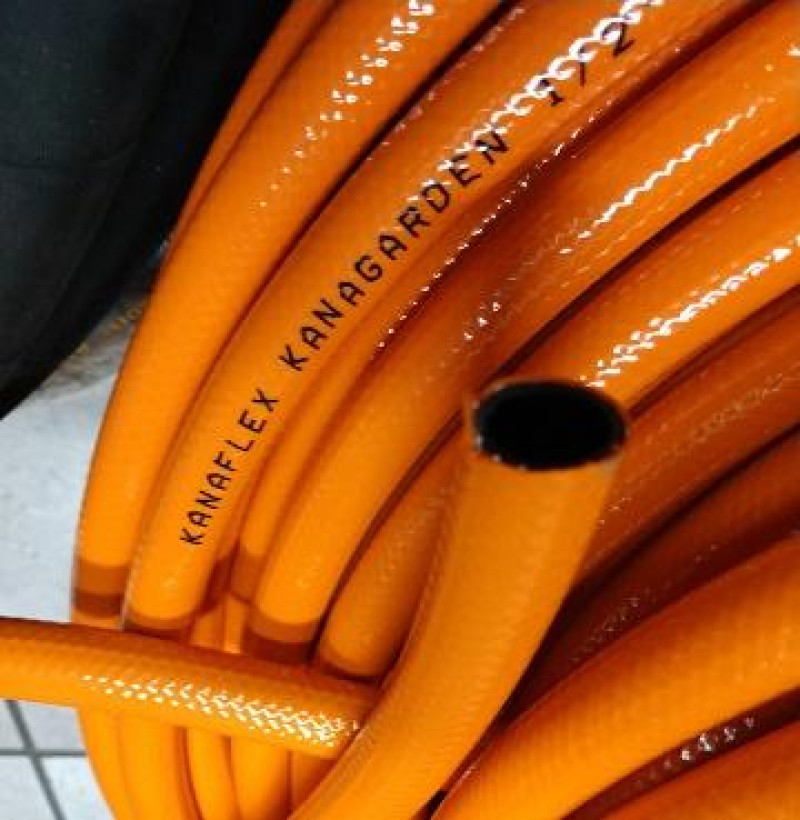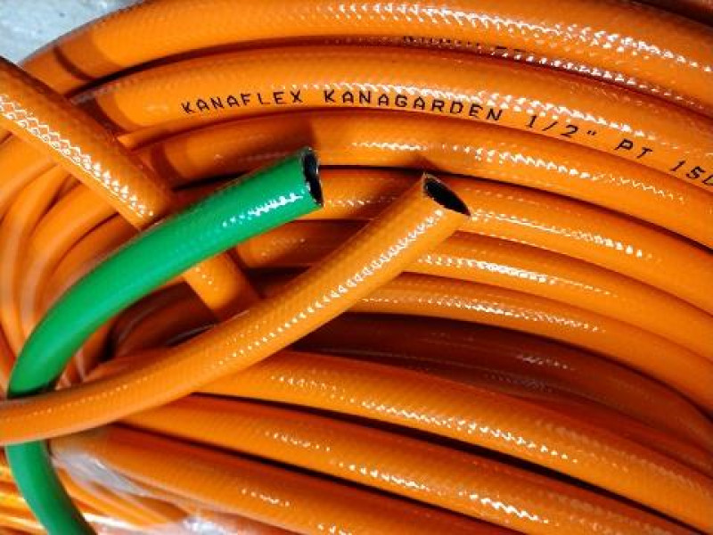 A mangueira Kanaflex flexível KANAGARDEN é usada para a condução de água na área de jardinagem e aplicações domésticas. Esta é produzida em PVC, reforçada com fios sintéticos, tem coloração verde, azul ou laranja e interno preto.