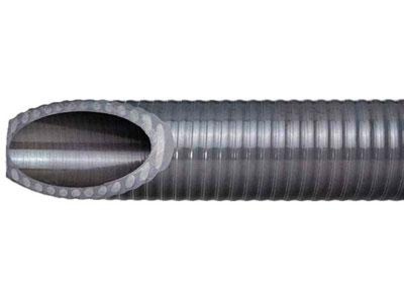 A mangueira Kanaflex flexível KCL é usada para a sucção e descarga de abrasivos pesados, sendo que esta é durável e resistente. A coloração do item é cinza escuro e tem o espiral laranja.