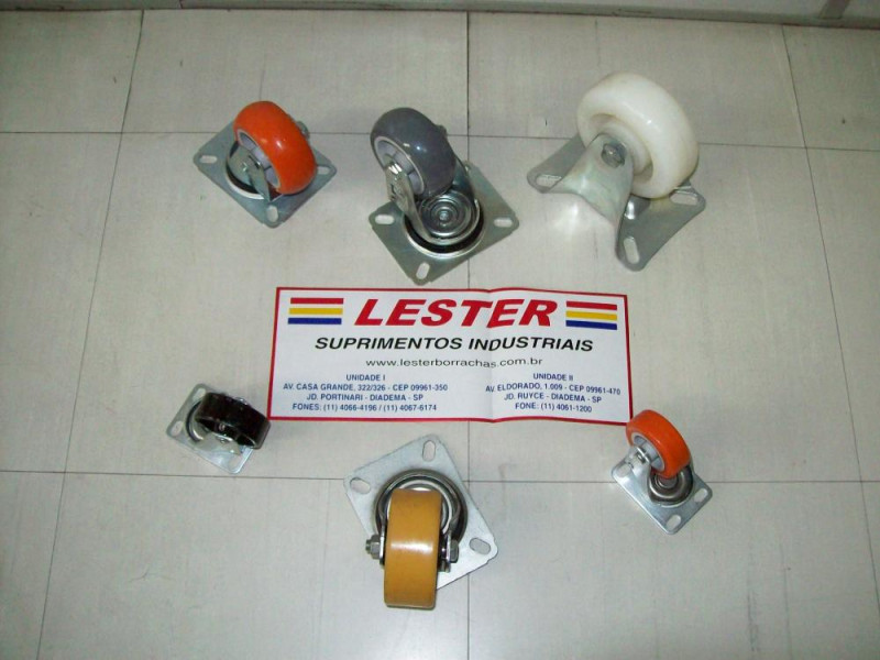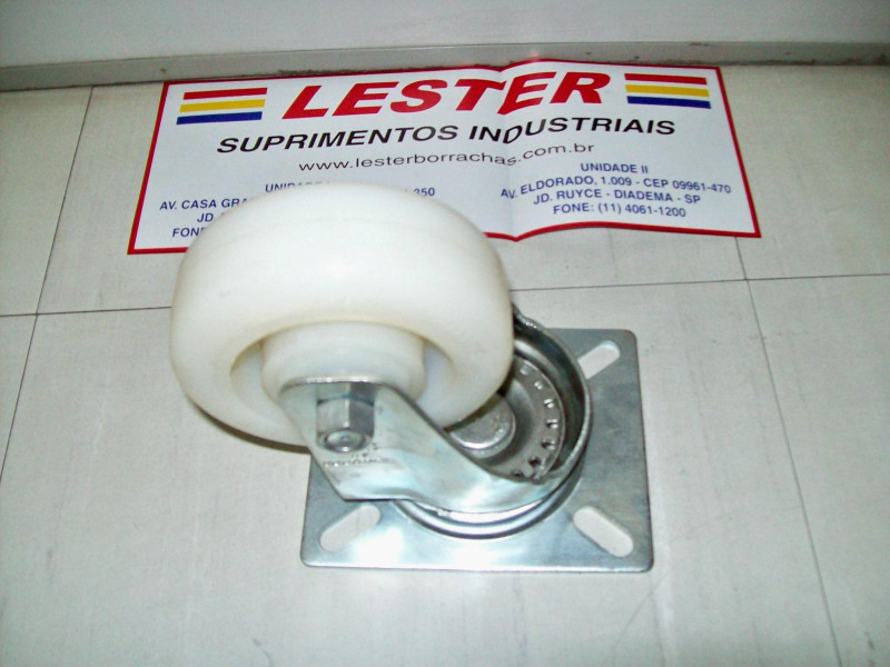 Rodízios são utilizados para fazer carros industriais para movimentação de cargas, produzidas em nylon com diâmetro de 2 polegadas que contém placa para fixação na estrutura metálica.