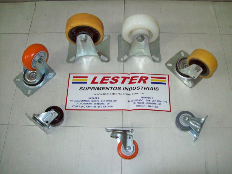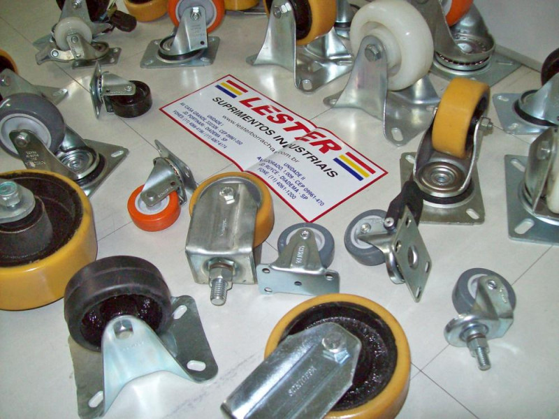 A Lester trabalha com rodas e rodízios nos modelos fixo, giratório e com placa para fixação com 04 parafusos.